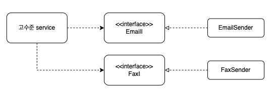 만약, 저수준 EmailSender 의 관점에서 인터페이스를 만든다면 EmailI 가 되었을 것이고,